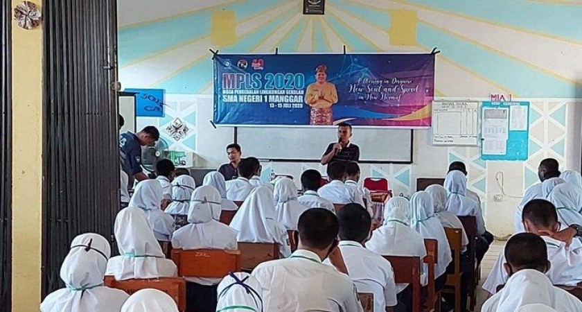 Pos Belitung memberikan edukasi kepada siswa-siswi SMA Negeri 1 Manggar dalam kegiatan Masa Pengenalan Lingkungan Sekolah (MPLS), Rabu (15/7/2020).