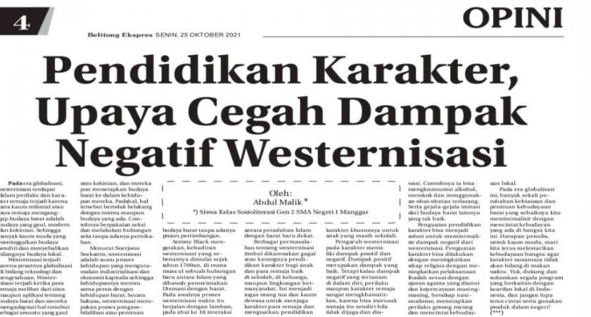 Artikel ini telah terbit di harian Belitong Ekspres pada Selasa (26/10/2021)