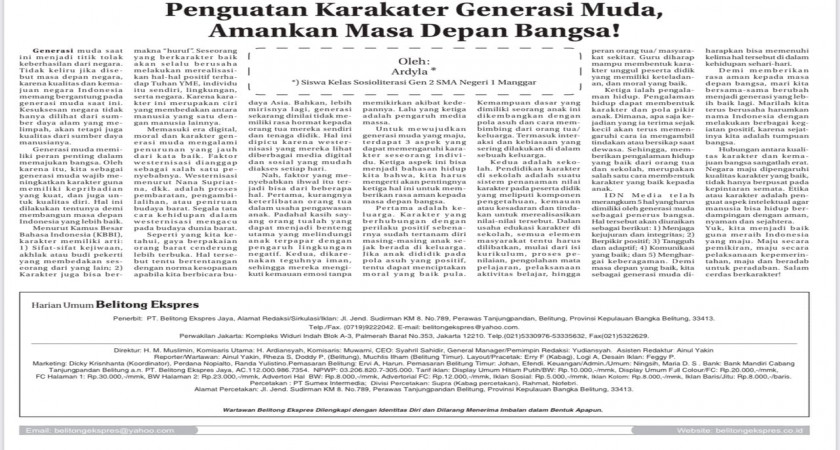 Artikel ini terlah terbit diharian Belitong Ekspres pada Senin 24 Januari 2021