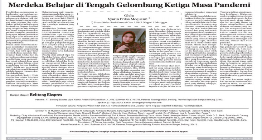 Artikel ini telah terbit di harian Belitong Ekspress pada Jumat 11 Februari 2022
