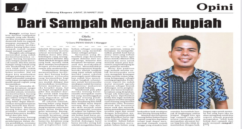 Artikel ini telah terbit di harian Belitong Ekspress edisi Jumat dan Senin 25 dan 28 Maret 2022
