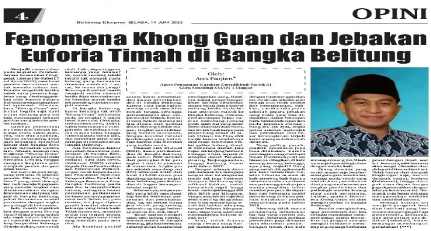 Artikel ini telah terbit di harian Belitong Ekspres Edisi Selasa 14 Juni 2022