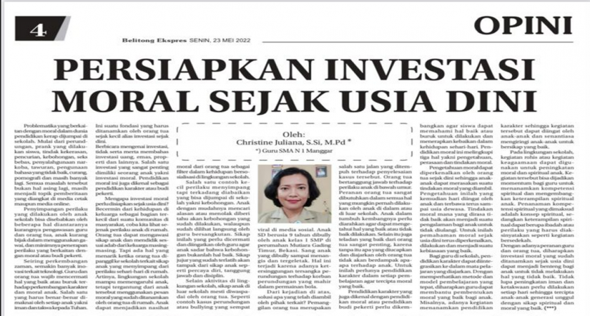 Artikel ini telah terbit di harian Belitong Ekspress pada 23 Mei 2022