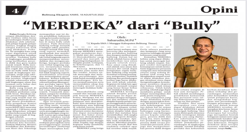 Artikel ini telah terbit di harian Belitong Ekspres pada Kamis 18 Agustus 2022